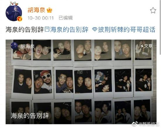 新浪娱乐讯,29日《披荆斩棘的哥哥》总决赛,@胡海泉 卡位18未能加入滚烫唱演家族。随后他微博发长文告别节目。